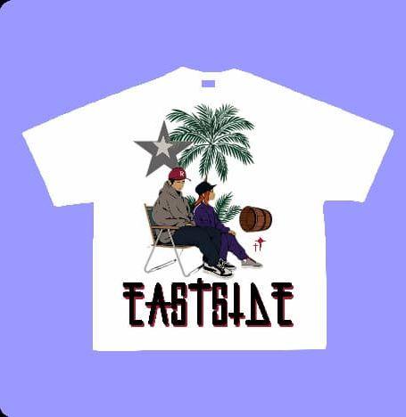 Featuring two characters in a chill moment under palm trees, with striking details and a clean "EASTSIDE" graphic - this piece brings a whole vibe to your fit.